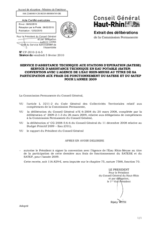 SERVICE D'ASSISTANCE TECHNIQUE AUX STATIONS D'EPURATION (SATESE) SERVICE D'ASSISTANCE TECHNIQUE EN EAU POTABLE (SATEP) CONVENTION AVEC L'AGENCE DE L'EAU RHIN-MEUSE AU TITRE DE SA PARTICIPATION AUX FRAIS DE FONCTIONNEMENT DU SATESE ET DU SATEP POUR L'ANNEE 2009