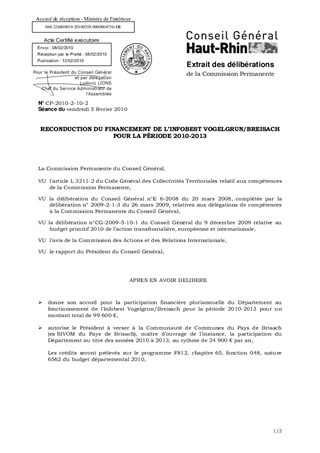 RECONDUCTION DU FINANCEMENT DE L’INFOBEST VOGELGRUN/BREISACH POUR LA PÉRIODE 2010-2013