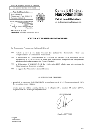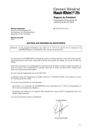 Il est proposé d'attribuer une aide de 4 145 € en faveur de la commune de DURMENACH pour la réalisation d'un sentier de découverte.