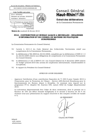 Dans le cadre du suivi des politiques européennes il vous est proposé de poursuivre en 2010 le soutien au Bureau Alsace de Bruxelles à hauteur de 71 400 €.