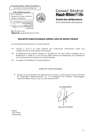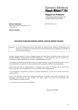 Le Centre Départemental du Haut-Rhin de Météo France sollicite l’autorisation de recourir aux services de l’imprimerie du Conseil Général pour dupliquer son bulletin annuel à titre gracieux.