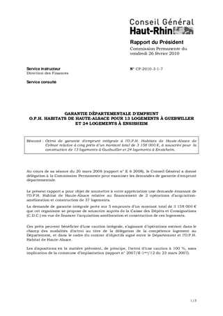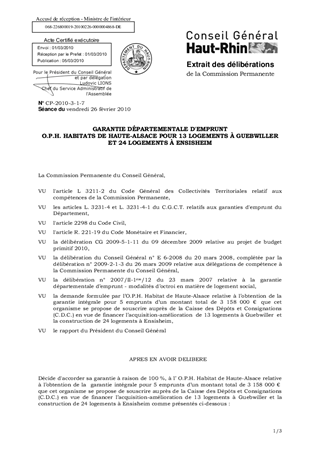 GARANTIE DÉPARTEMENTALE D'EMPRUNT O.P.H. HABITATS DE HAUTE-ALSACE POUR 13 LOGEMENTS À GUEBWILLER ET 24 LOGEMENTS À ENSISHEIM