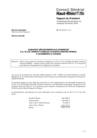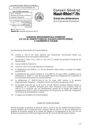 GARANTIE DÉPARTEMENTALE D’EMPRUNT S.A. H.L.M. HABITAT FAMILIAL D’ALSACE GROUPE DOMIAL 8 LOGEMENTS À COLMAR