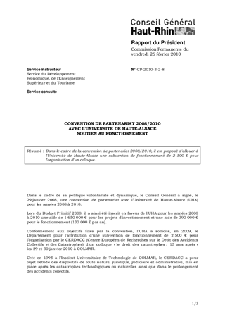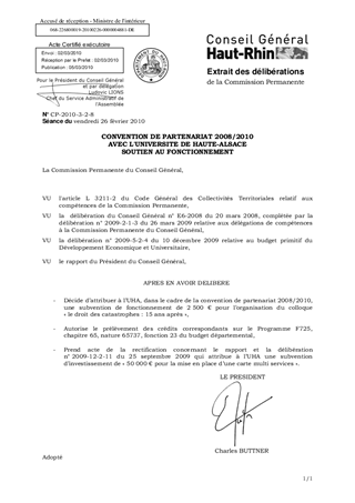 CONVENTION DE PARTENARIAT 2008/2010 AVEC L'UNIVERSITE DE HAUTE-ALSACE SOUTIEN AU FONCTIONNEMENT