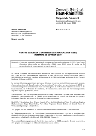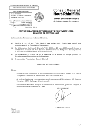 Il vous est proposé d'autoriser le versement d'une subvention de 54 000 € au Centre Européen d'Entreprise et d'Innovation (CEEI) pour 2010 dans le cadre de la convention jointe en annexe du présent rapport.