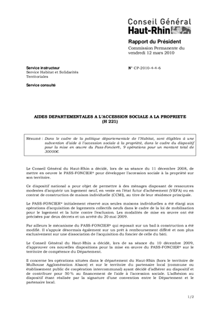 AIDES DEPARTEMENTALES A L’ACCESSION SOCIALE A LA PROPRIETE(H 221)