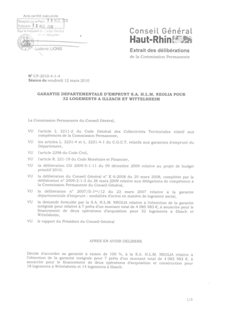 GARANTIE DEPARTEMENTALE D’EMPRUNT S.A. H.L.M. NEOLIA POUR32 LOGEMENTS A ILLZACH ET WITTELSHEIM