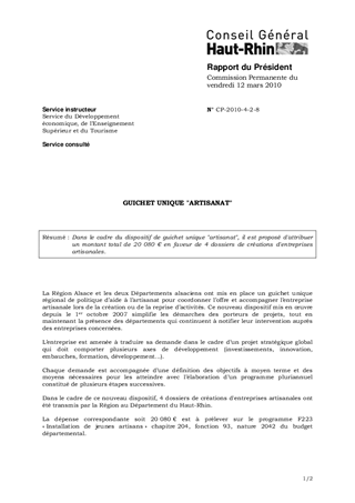 Dans le cadre du dispositif de guichet unique "artisanat", il est proposé d'attribuer un montant total de 20 080 € en faveur de 4 dossiers de créations d'entreprises artisanales.
