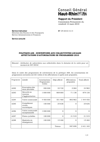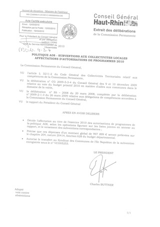 POLITIQUE A08 - SUBVENTIONS AUX COLLECTIVITES LOCALESAFFECTATIONS D'AUTORISATIONS DE PROGRAMMES 2010