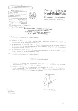 Le présent rapport propose le versement de subventions d’un montant total de 15.392,53 € pour les sorties scolaires avec nuitées.