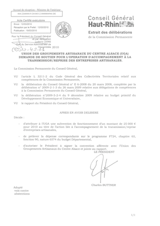UNION DES GROUPEMENTS ARTISANAUX DU CENTRE ALSACE (UGA)DEMANDE DE SOUTIEN POUR L'OPERATION D'ACCOMPAGNEMENT À LA TRANSMISSION/REPRISE DES ENTREPRISES ARTISANALES.