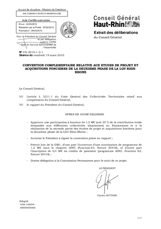 CONVENTION COMPLEMENTAIRE RELATIVE AUX ETUDES DE PROJET ET ACQUISITIONS FONCIERES DE LA DEUXIEME PHASE DE LA LGV RHIN-RHONE