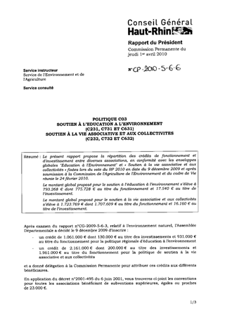POLITIQUE C03SOUTIEN À L’EDUCATION A L’ENVIRONNEMENT (C231, C731 ET C631)SOUTIEN À LA VIE ASSOCIATIVE ET AUX COLLECTIVITES (C232, C732 ET C632)