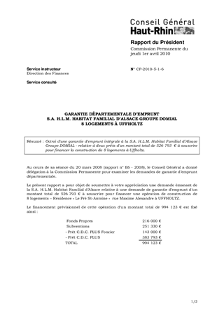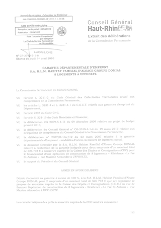 GARANTIE DÉPARTEMENTALE D’EMPRUNTS.A. H.L.M. HABITAT FAMILIAL D’ALSACE GROUPE DOMIAL8 LOGEMENTS À UFFHOLTZ