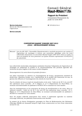 CONVENTION MASSIF VOSGIEN 2007-2013 (C244 – DÉVELOPPEMENT RURAL)