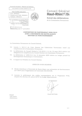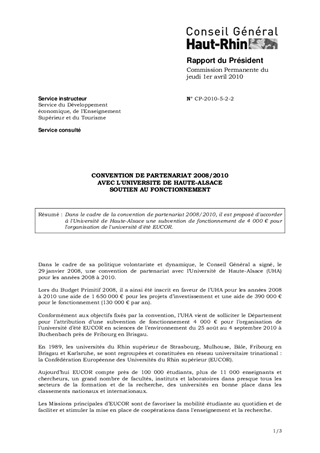 CONVENTION DE PARTENARIAT 2008/2010 AVEC L'UNIVERSITE DE HAUTE-ALSACESOUTIEN AU FONCTIONNEMENT