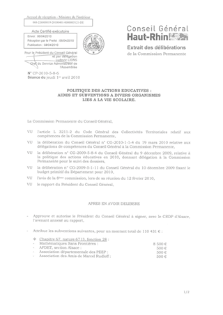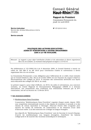 Le rapport a pour objet l'attribution d'aides et de subventions à divers organismes liés à la vie scolaire. Le montant total proposé est égal à 110 431 €.