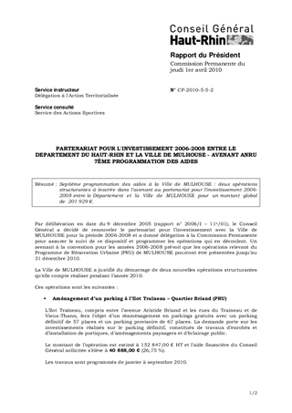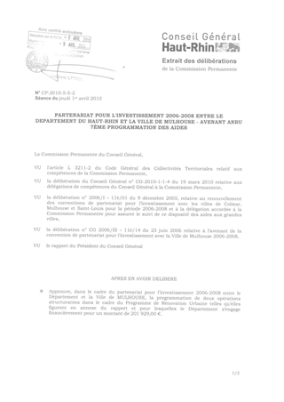 PARTENARIAT POUR L'INVESTISSEMENT 2006-2008 ENTRE LE DEPARTEMENT DU HAUT-RHIN ET LA VILLE DE MULHOUSE - AVENANT ANRU 7ÈME PROGRAMMATION DES AIDES