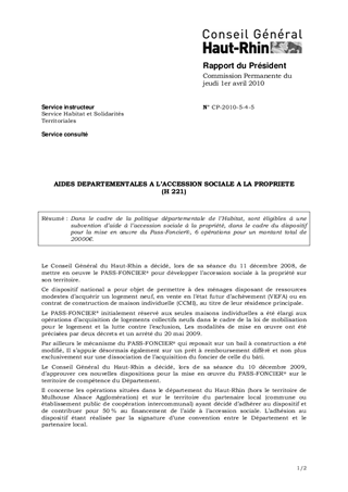 AIDES DEPARTEMENTALES A L’ACCESSION SOCIALE A LA PROPRIETE(H 221)