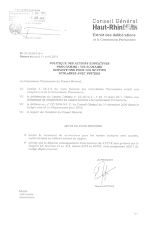 POLITIQUE DES ACTIONS EDUCATIVESPROGRAMME : VIE SCOLAIRESUBVENTIONS POUR LES SORTIESSCOLAIRES AVEC NUITEES
