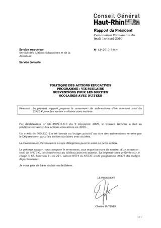 Le présent rapport propose le versement de subventions d’un montant total de 5.973 € pour les sorties scolaires avec nuitées.