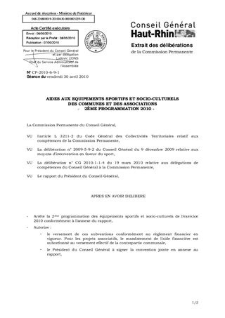 AIDES AUX EQUIPEMENTS SPORTIFS ET SOCIO-CULTURELS DES COMMUNES ET DES ASSOCIATIONS - 2ÈME PROGRAMMATION 2010 -