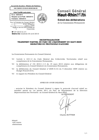 DECENTRALISATION TRANSFERT PARTIEL DU PARC DE L'EQUIPEMENT DU HAUT-RHIN SIGNATURE DU PROTOCOLE D'ACCORD