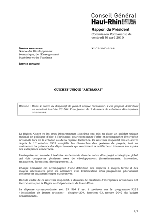 Dans le cadre du dispositif de guichet unique "artisanat", il est proposé d'attribuer un montant total de 23 564 € en faveur de 7 dossiers de créations d'entreprises artisanales.