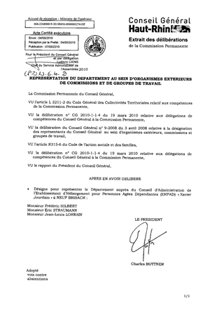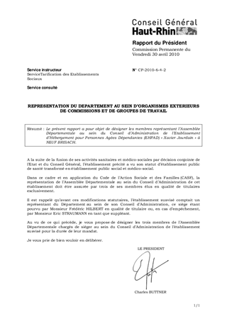Le présent rapport a pour objet de désigner les membres représentant l'Assemblée Départementale au sein du Conseil d'Administration de l'Etablissement d'Hébergement pour Personnes Agées Dépendantes (EHPAD) « Xavier Jourdain » à NEUF BRISACH.