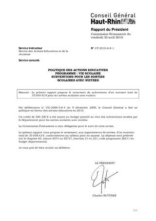 Le présent rapport propose le versement de subventions d’un montant total de 35.008.42 € pour les sorties scolaires avec nuitées.
