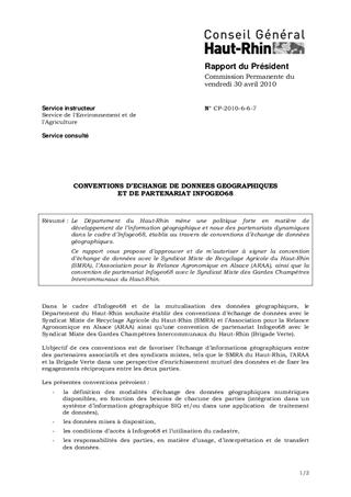 CONVENTIONS D'ECHANGE DE DONNEES GEOGRAPHIQUES ET DE PARTENARIAT INFOGEO68