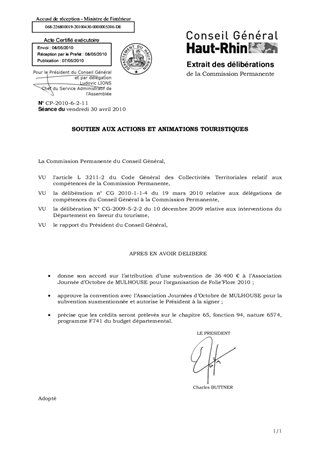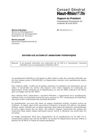 Il est proposé d'accorder une subvention de 36 400 € à l'association "Journées d'Octobre" pour la manifestation Folie'Flore 2010.