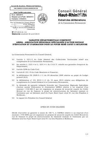 GARANTIE DÉPARTEMENTALE D'EMPRUNT ARSEA - ASSOCIATION RÉGIONALE SPÉCIALISÉE D'ACTION SOCIALE D'ÉDUCATION ET D'ANIMATION POUR LE FOYER RENÉ CAYET À MULHOUSE