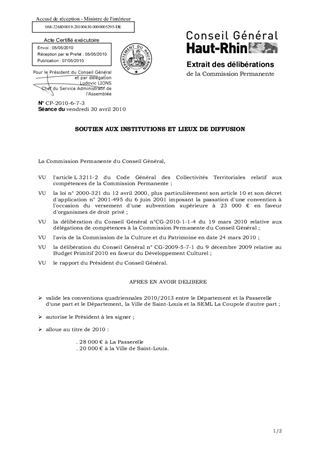 Il est proposé de reconduire 2 conventions de partenariat de 2010 à 2013 entre le Département et La Passerelle à Rixheim d'une part et le Département, la Ville de Saint-Louis et la SEML La Coupole d'autre part et d'allouer des aides d'un montant global de 48 000 € en 2010 à ces structures.