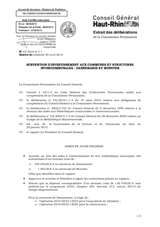 SUBVENTION D'INVESTISSEMENT AUX COMMUNES ET STRUCTURES INTERCOMMUNALES : DANNEMARIE ET MUNSTER