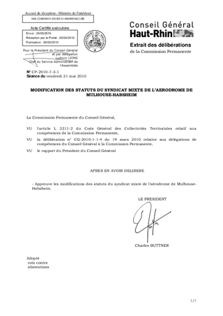 MODIFICATION DES STATUTS DU SYNDICAT MIXTE DE L'AERODROME DE MULHOUSE-HABSHEIM