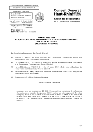 PROGRAMME E258 LANGUE ET CULTURE REGIONALES - SOUTIEN AU DEVELOPPEMENT DES SITES BILINGUES (PREMIERE LISTE 2010)