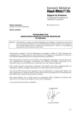 PROGRAMME E758 ASSOCIATION LANGUE ET CULTURE REGIONALES DU SUNDGAU
