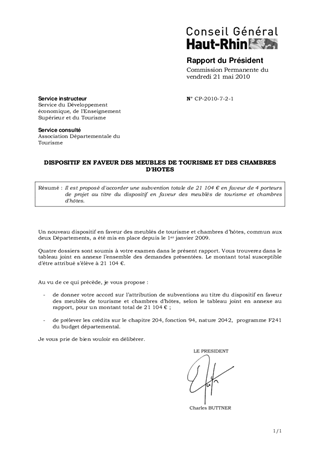 Il est proposé d'accorder une subvention totale de 21 104 € en faveur de 4 porteurs de projet au titre du dispositif en faveur des meublés de tourisme et chambres d'hôtes.