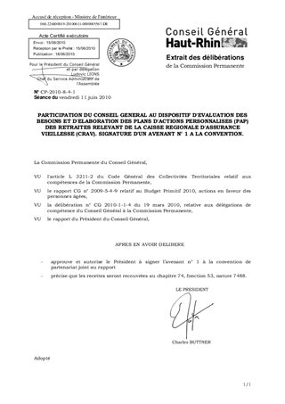 PARTICIPATION DU CONSEIL GENERAL AU DISPOSITIF D'EVALUATION DES BESOINS ET D'ELABORATION DES PLANS D'ACTIONS PERSONNALISES (PAP) DES RETRAITES RELEVANT DE LA CAISSE REGIONALE D'ASSURANCE VIEILLESSE (CRAV). SIGNATURE D'UN AVENANT N° 1 A LA CONVENTION.