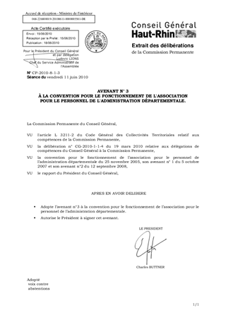 AVENANT N° 3 À LA CONVENTION POUR LE FONCTIONNEMENT DE L'ASSOCIATION POUR LE PERSONNEL DE L'ADMINISTRATION DÉPARTEMENTALE.