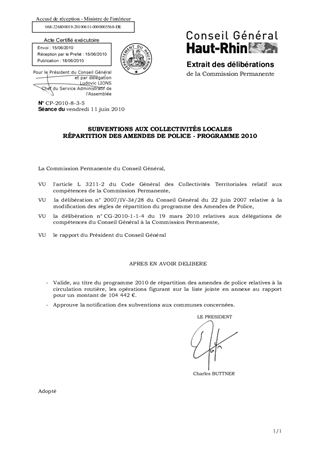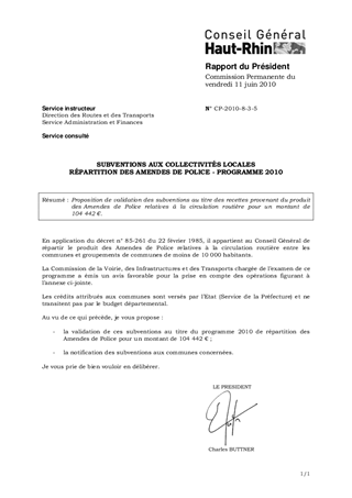 SUBVENTIONS AUX COLLECTIVITÉS LOCALES RÉPARTITION DES AMENDES DE POLICE - PROGRAMME 2010