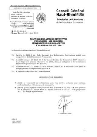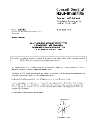 POLITIQUE DES ACTIONS EDUCATIVES PROGRAMME : VIE SCOLAIRE SUBVENTIONS POUR LES SORTIES SCOLAIRES AVEC NUITEES