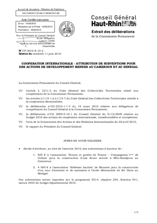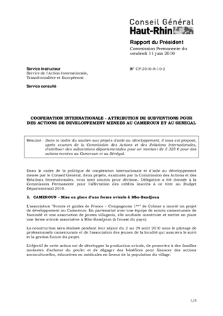 COOPERATION INTERNATIONALE - ATTRIBUTION DE SUBVENTIONS POUR DES ACTIONS DE DEVELOPPEMENT MENEES AU CAMEROUN ET AU SENEGAL