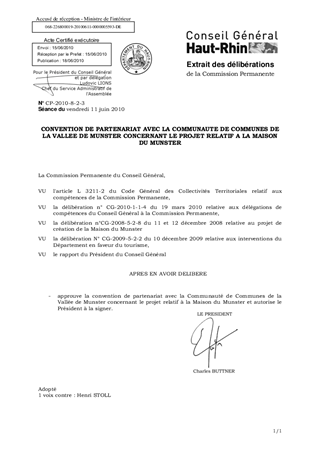 CONVENTION DE PARTENARIAT AVEC LA COMMUNAUTE DE COMMUNES DE LA VALLEE DE MUNSTER CONCERNANT LE PROJET RELATIF A LA MAISON DU MUNSTER