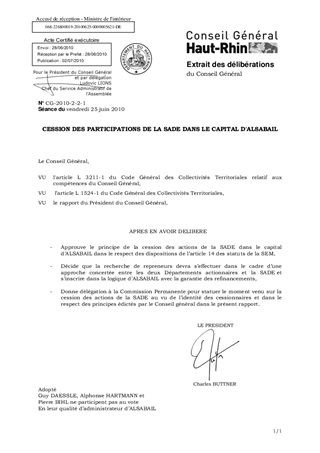 CESSION DES PARTICIPATIONS DE LA SADE DANS LE CAPITAL D'ALSABAIL