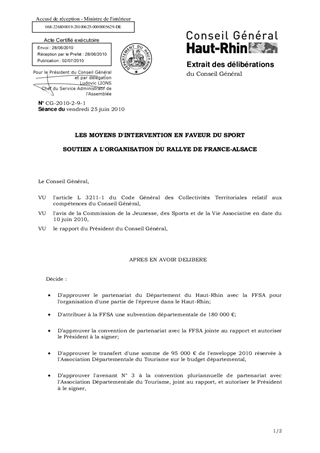 LES MOYENS D'INTERVENTION EN FAVEUR DU SPORT SOUTIEN A L'ORGANISATION DU RALLYE DE FRANCE-ALSACE