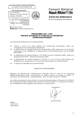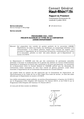 PROGRAMME C261, C262 PROJETS ELIGIBLES AU TITRE DE LA CONVENTION ADEME-DEPARTEMENT