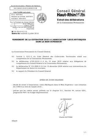 VERSEMENT DE LA COTISATION 2010 A L'ASSOCIATION "LIEUX MYTHIQUES DANS LE RHIN SUPERIEUR"