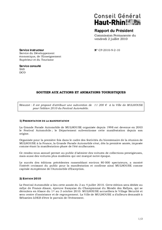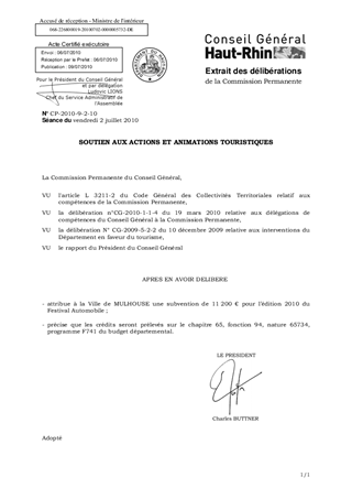 Il est proposé d'attribuer une subvention de 11 200 € à la Ville de MULHOUSE pour l'édition 2010 du Festival Automobile.